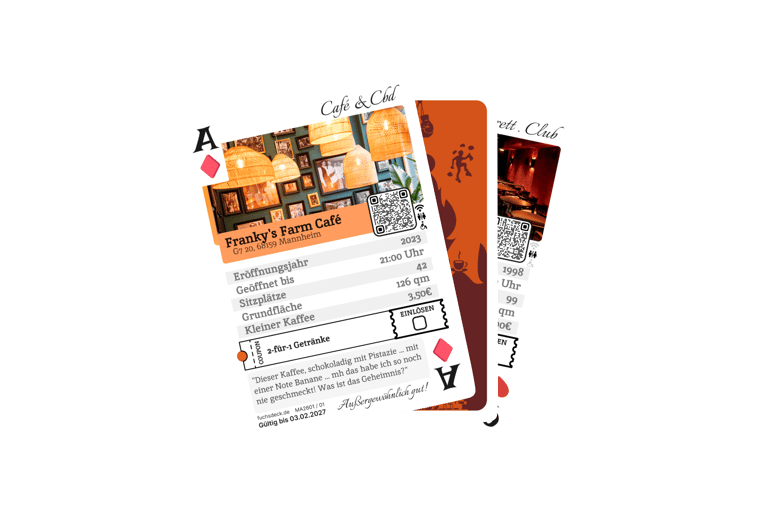 Genau! 36 Spielkarten, 36 Locations, 36 Gutscheine. Hole dir dein Set und entdecke Mannheim neu!